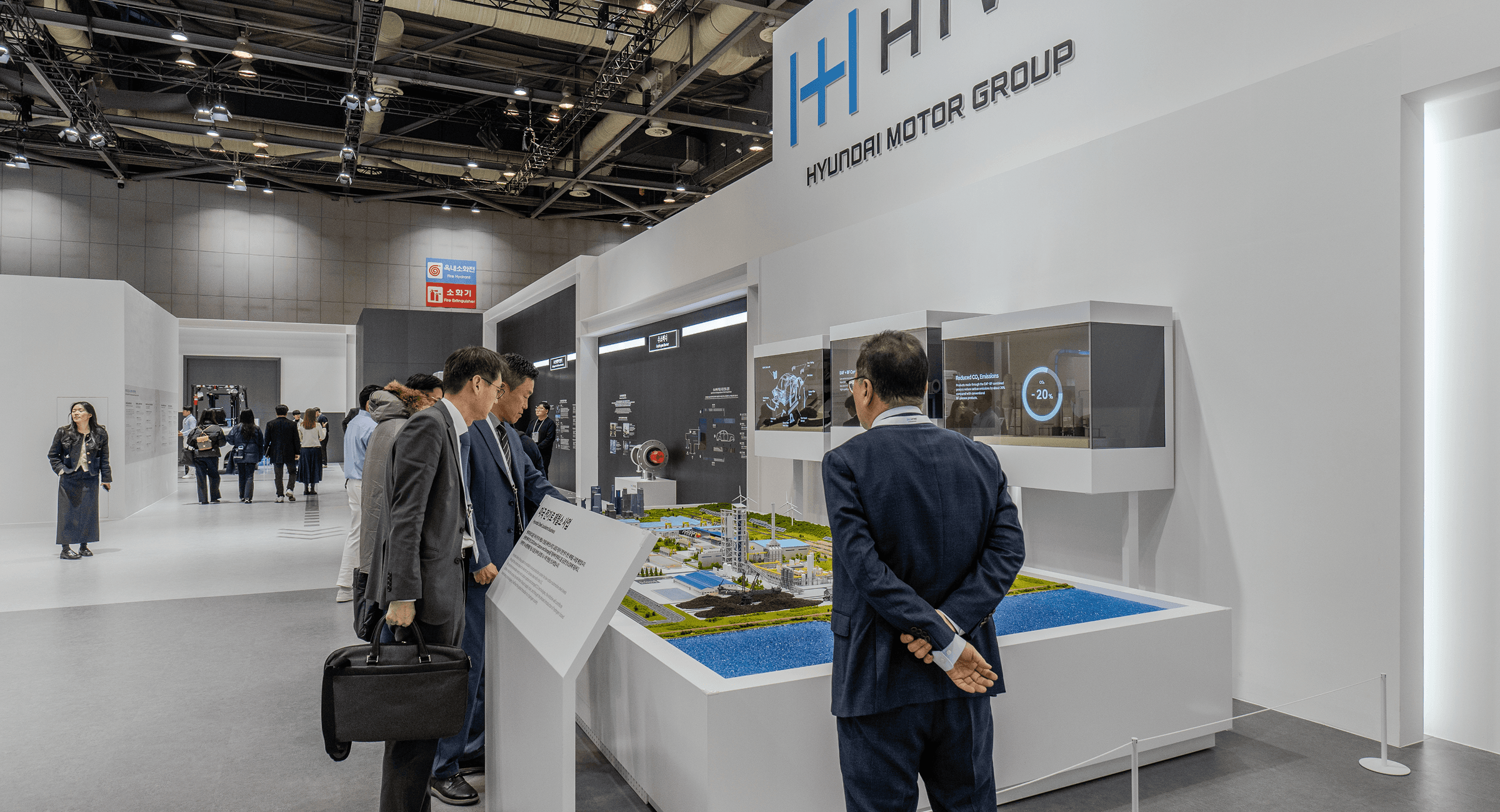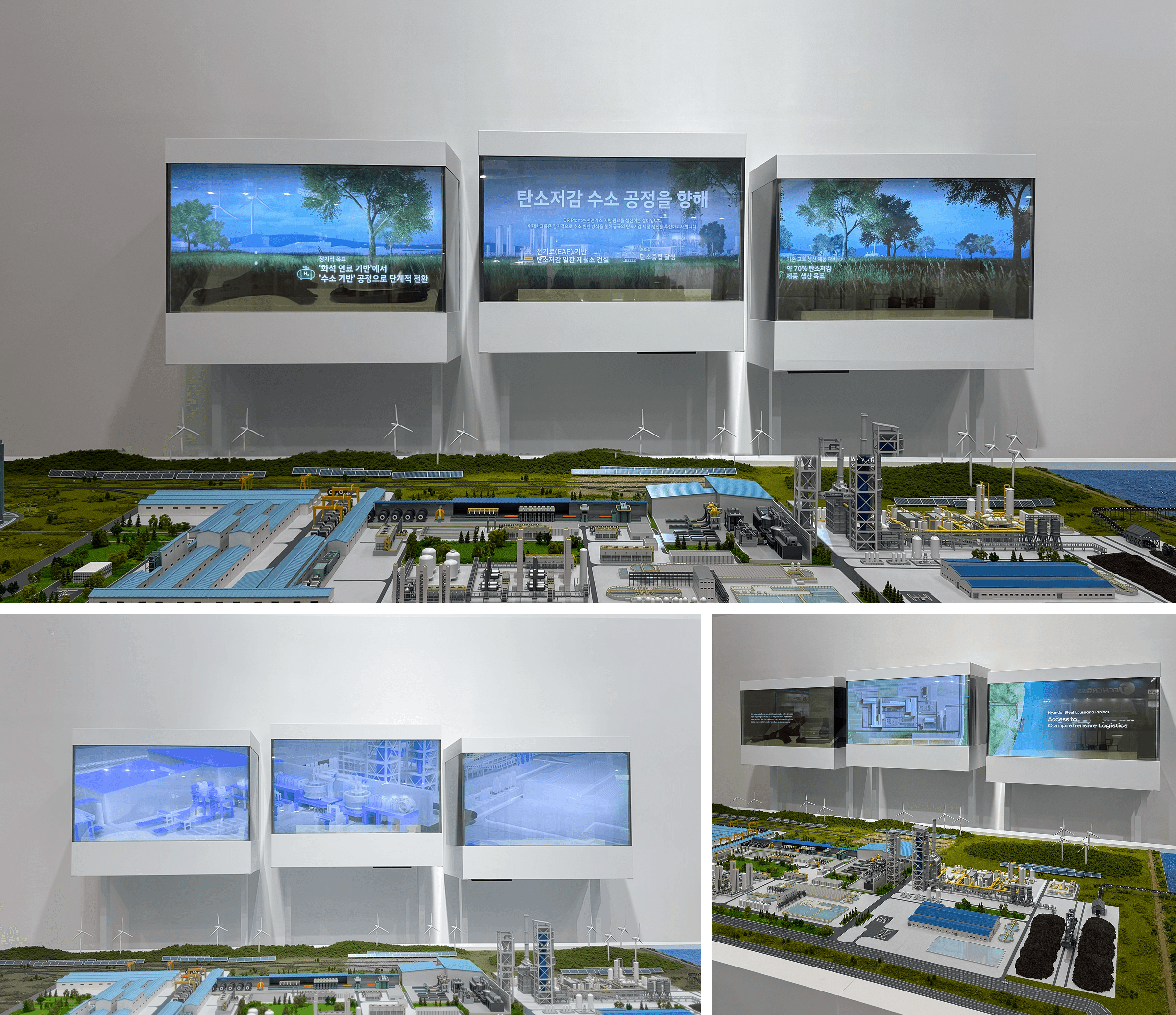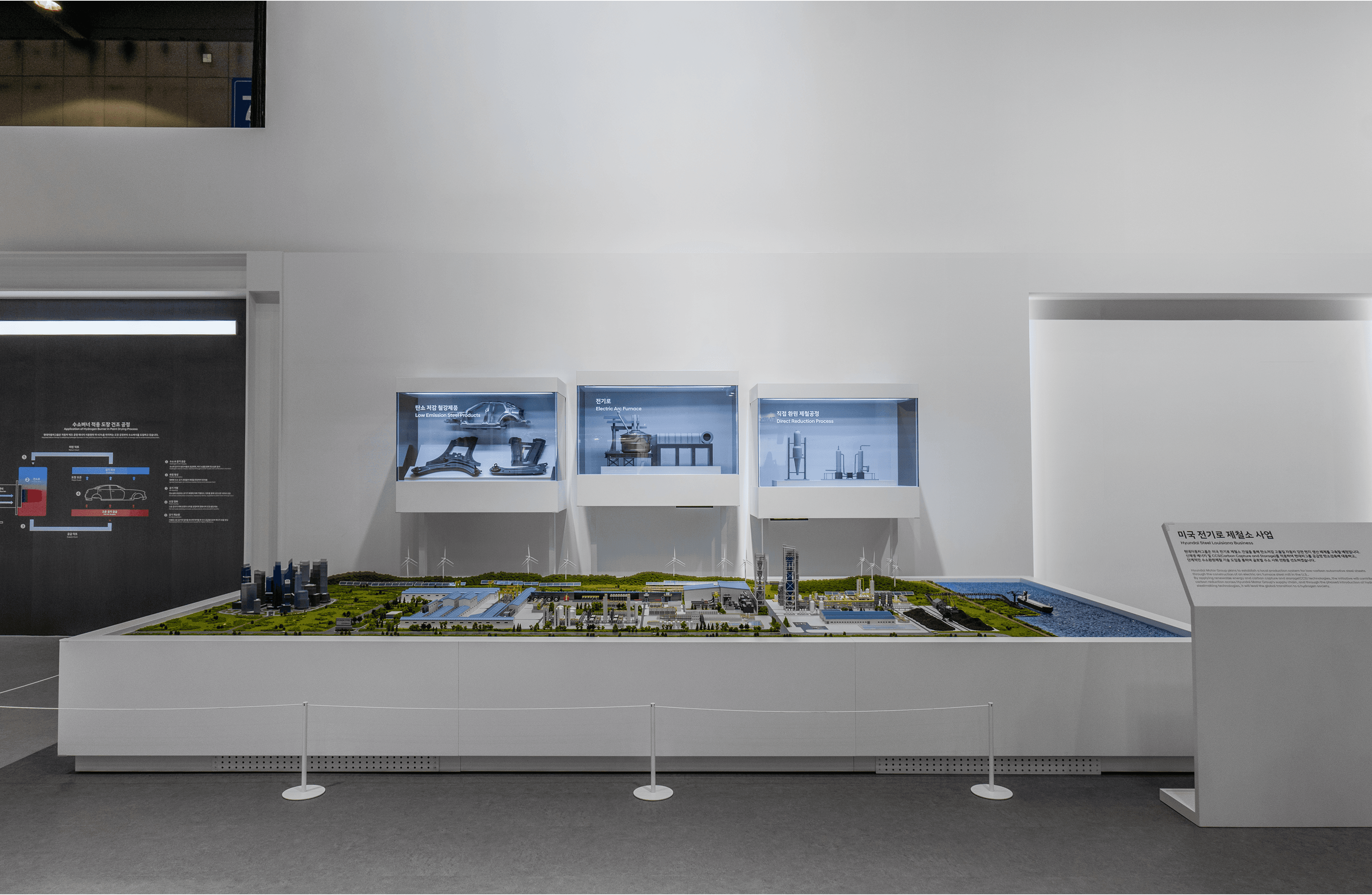 At WHE 2025, Hyundai Steel showcased hydrogen steelmaking and Louisiana plant plans using dioramas and transparent displays. Aboard provided the hardware, media, and software systems, ensuring efficient and stable operations.